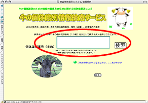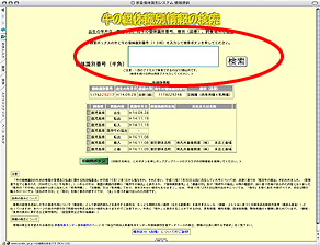 検索ボックスの中に牛の「個体識別番号」(10桁)を入力して