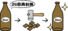 通常ビールビンの平均寿命は約8年。1年に3回ずつ8年繰り返すと、