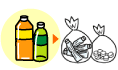 ● | 飲料瓶・調味料瓶・酒瓶・ また色つき瓶と透明瓶は各々分別して、お出し下さい。 |